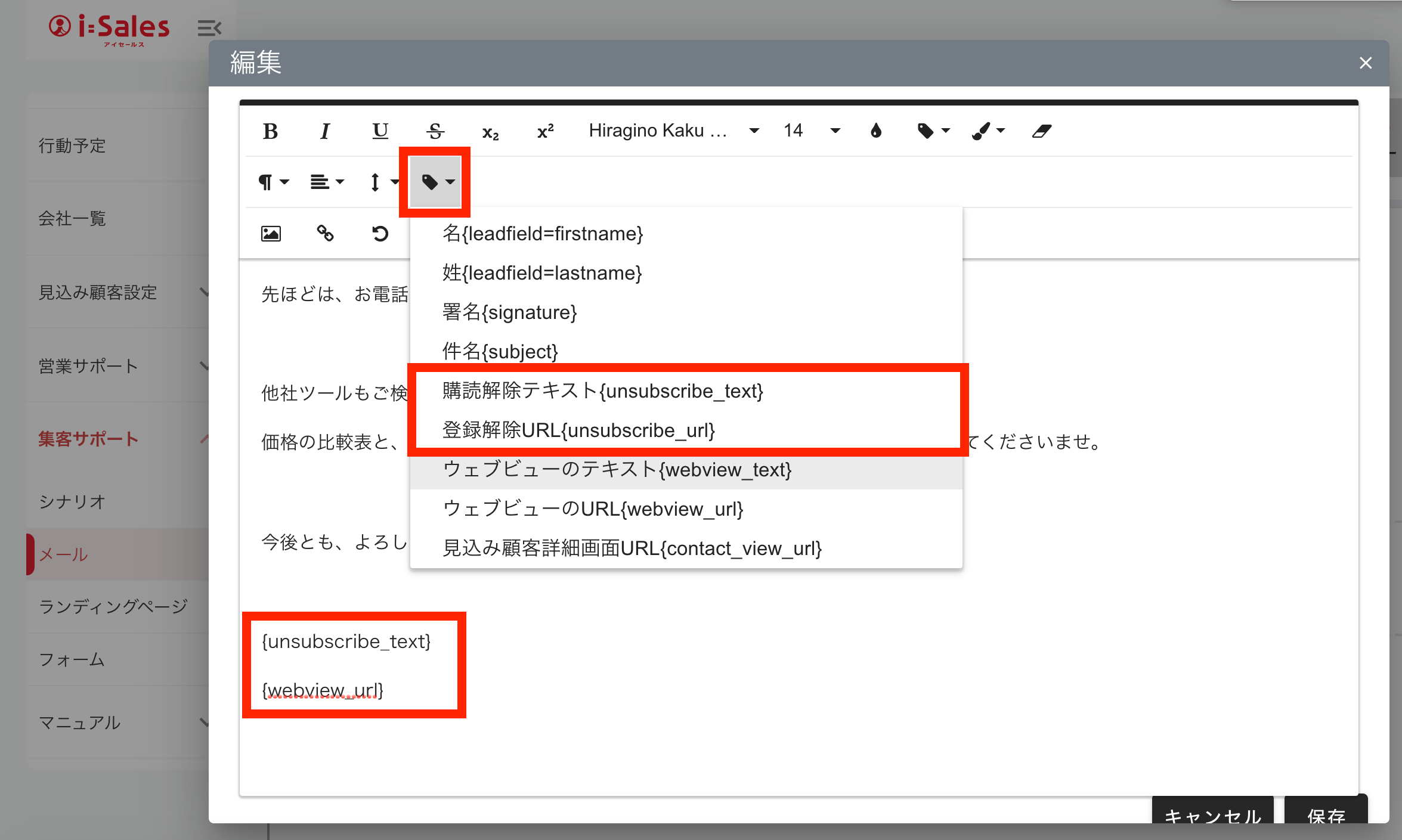 2 メールにインサートトークンを挿入することで、リンクを踏んだ見込顧客に連絡禁止になるようにする
