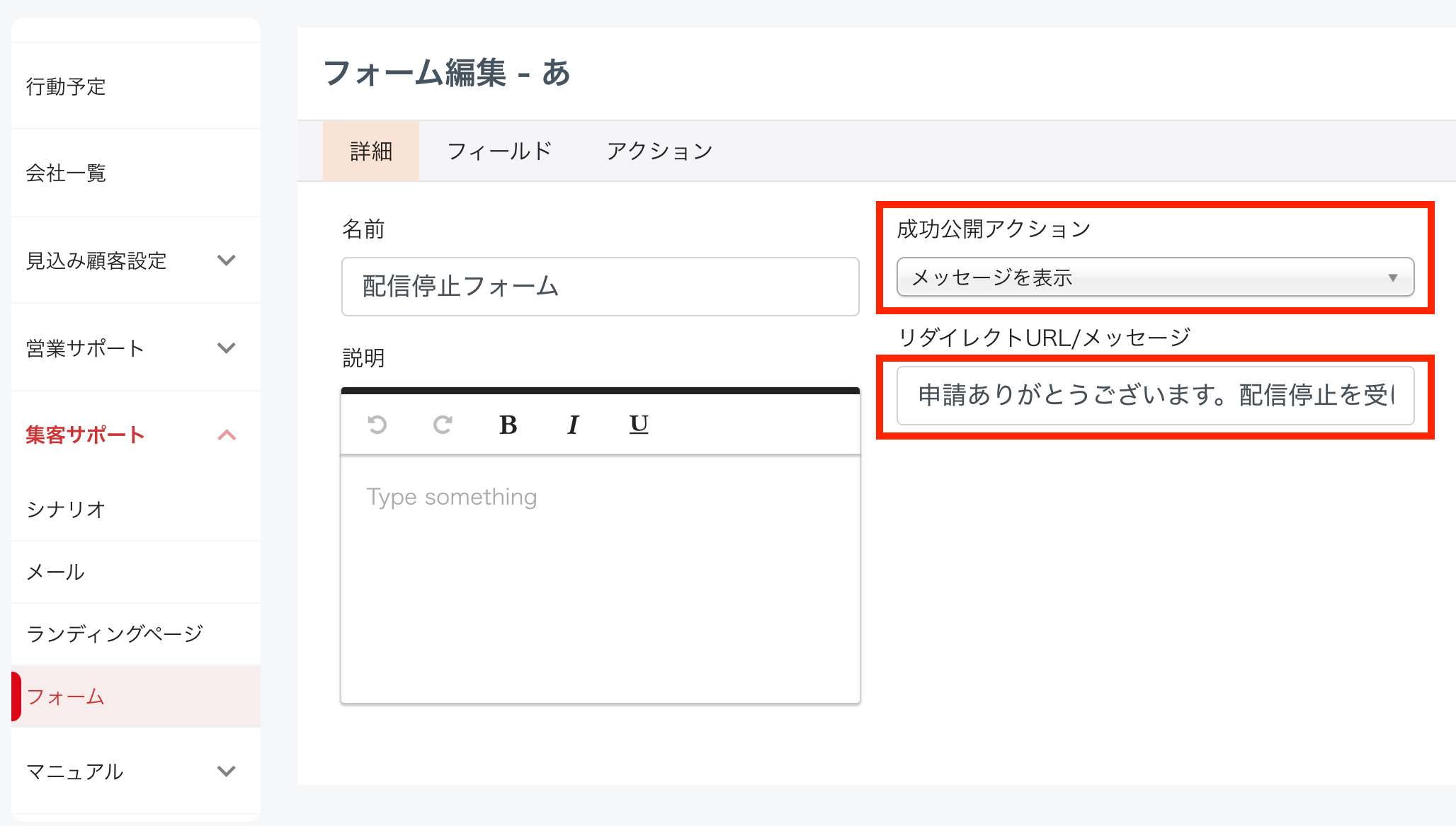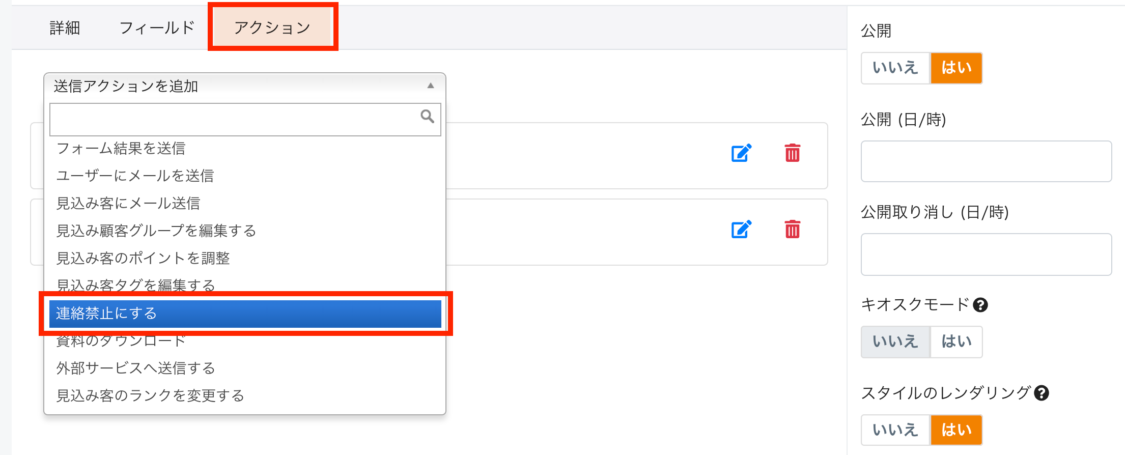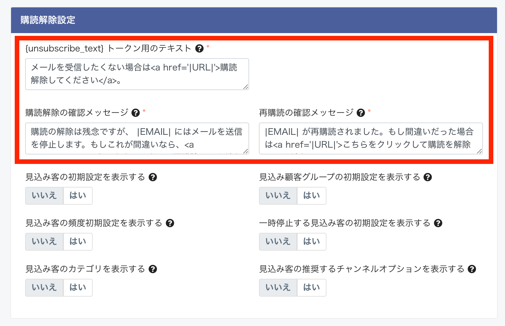 この設定により、このフォームを送信した見込み顧客に対しては、以降メールの配信が行われません。