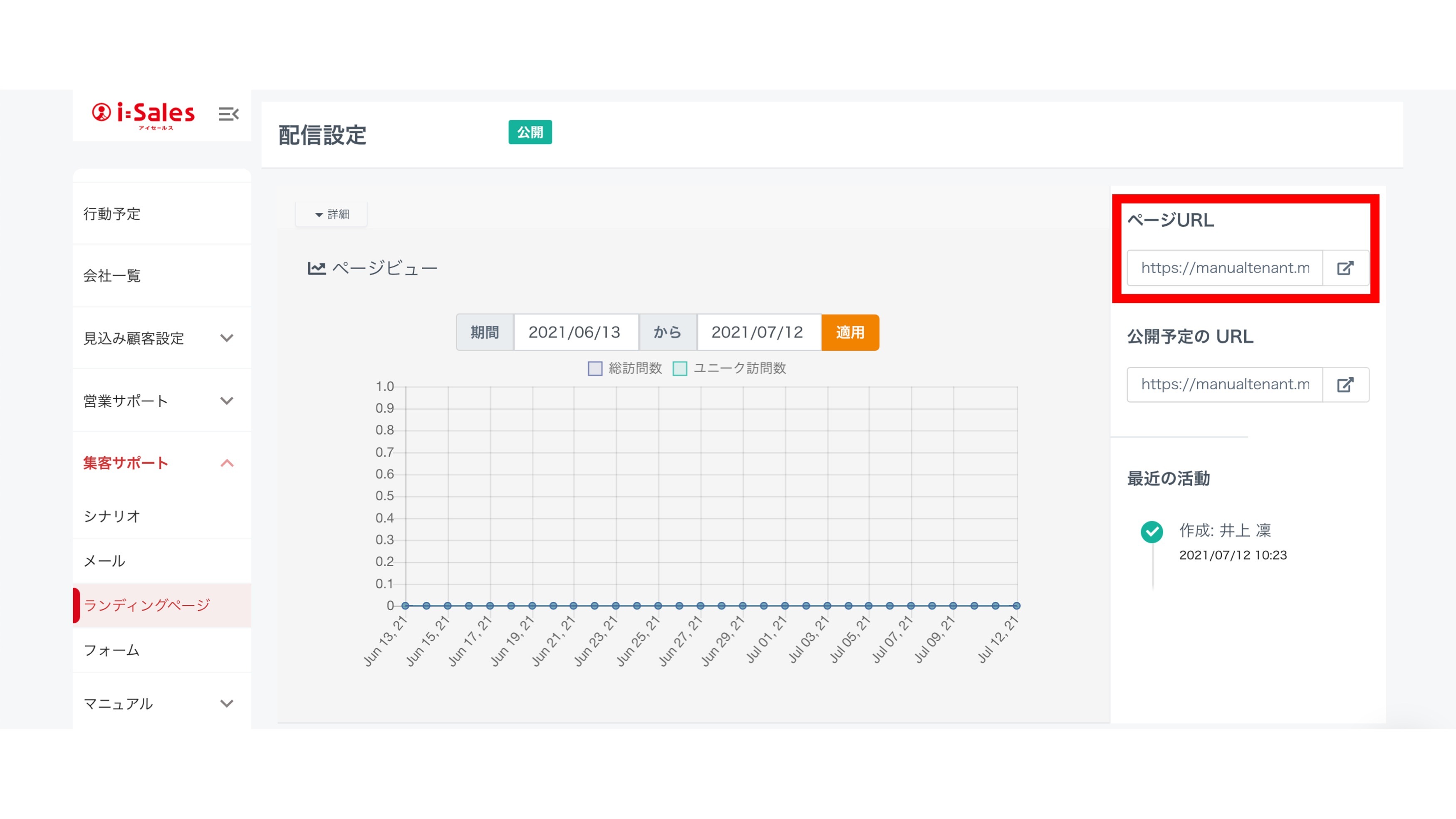 ランディングページに埋め込むためのURLを生成し、保存する