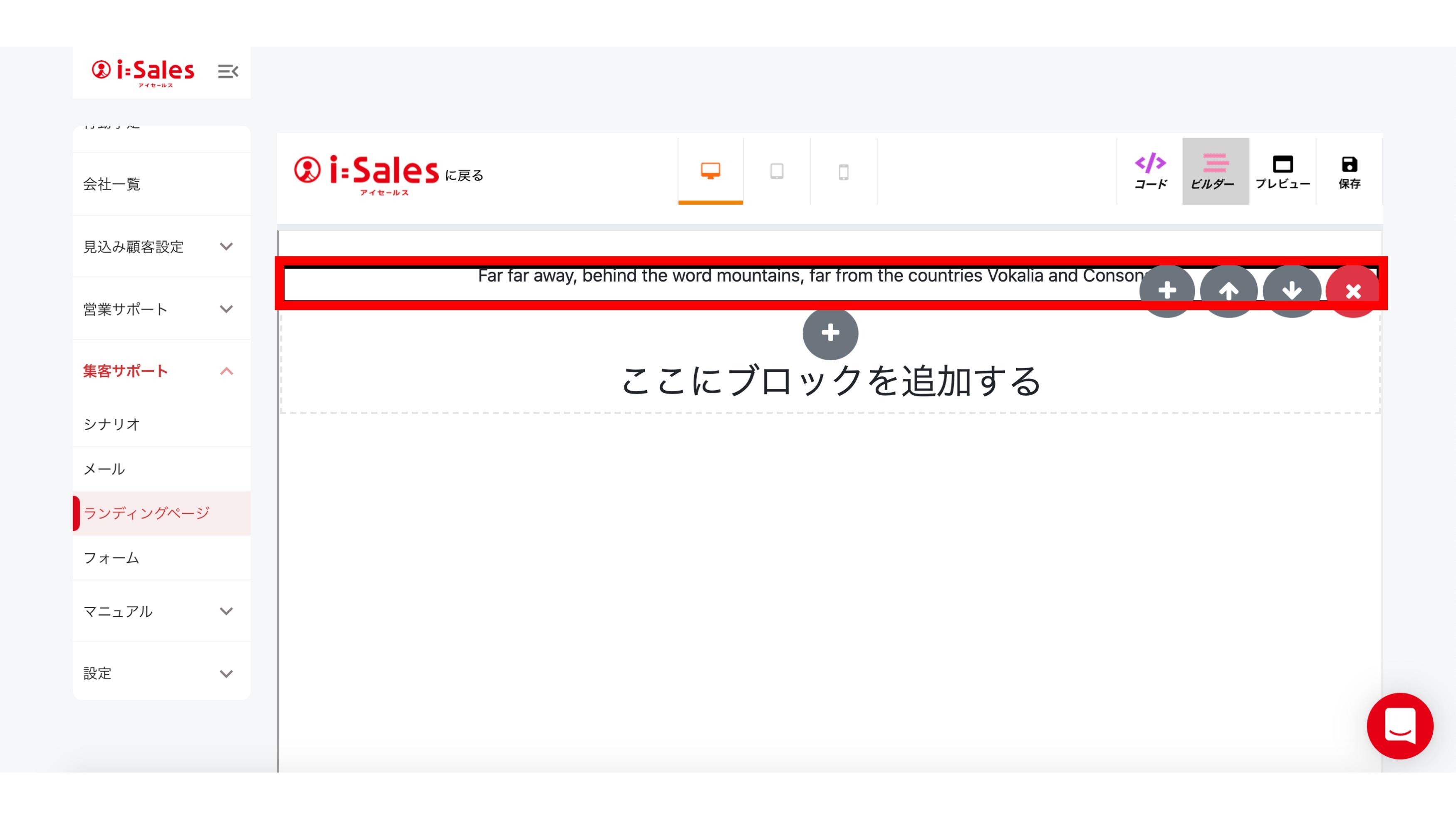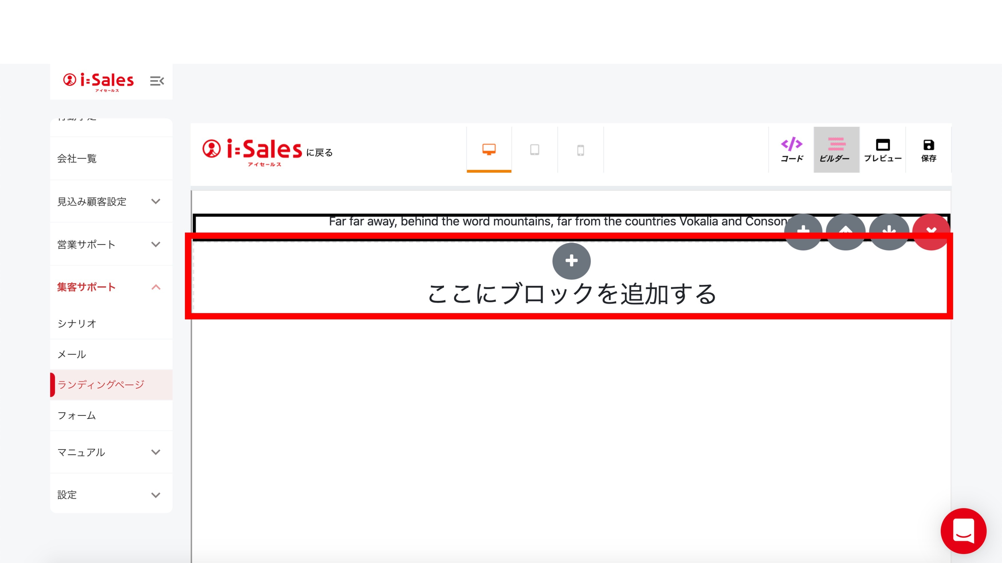「ここにブロックを追加する」の上部「+」ボタンを押します