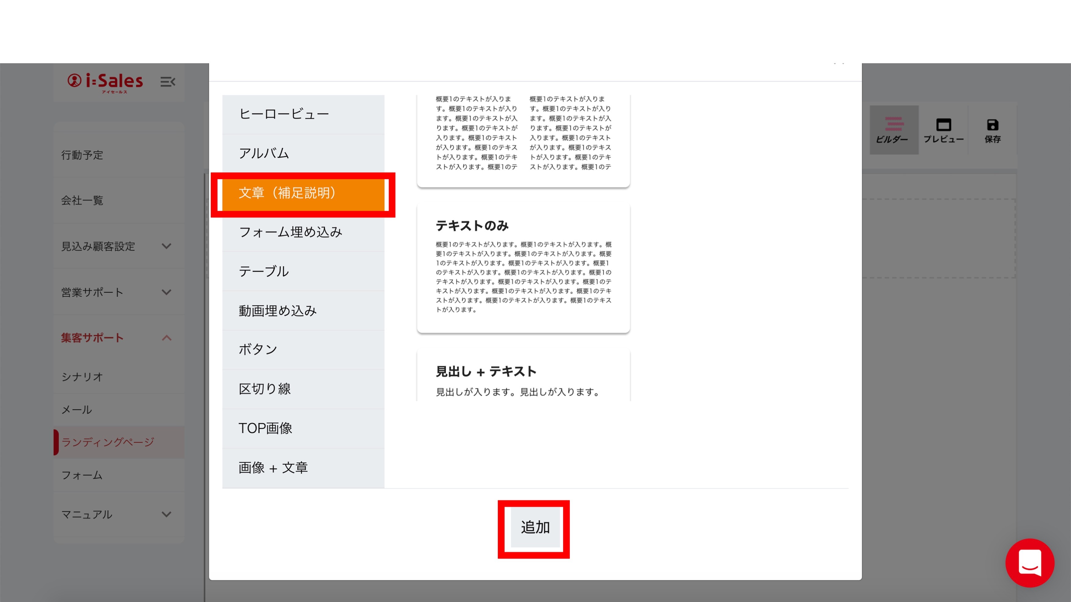 追加する要素が選べますので、文章を選択後、「テキストのみ」を選択肢追加ボタンを押します。