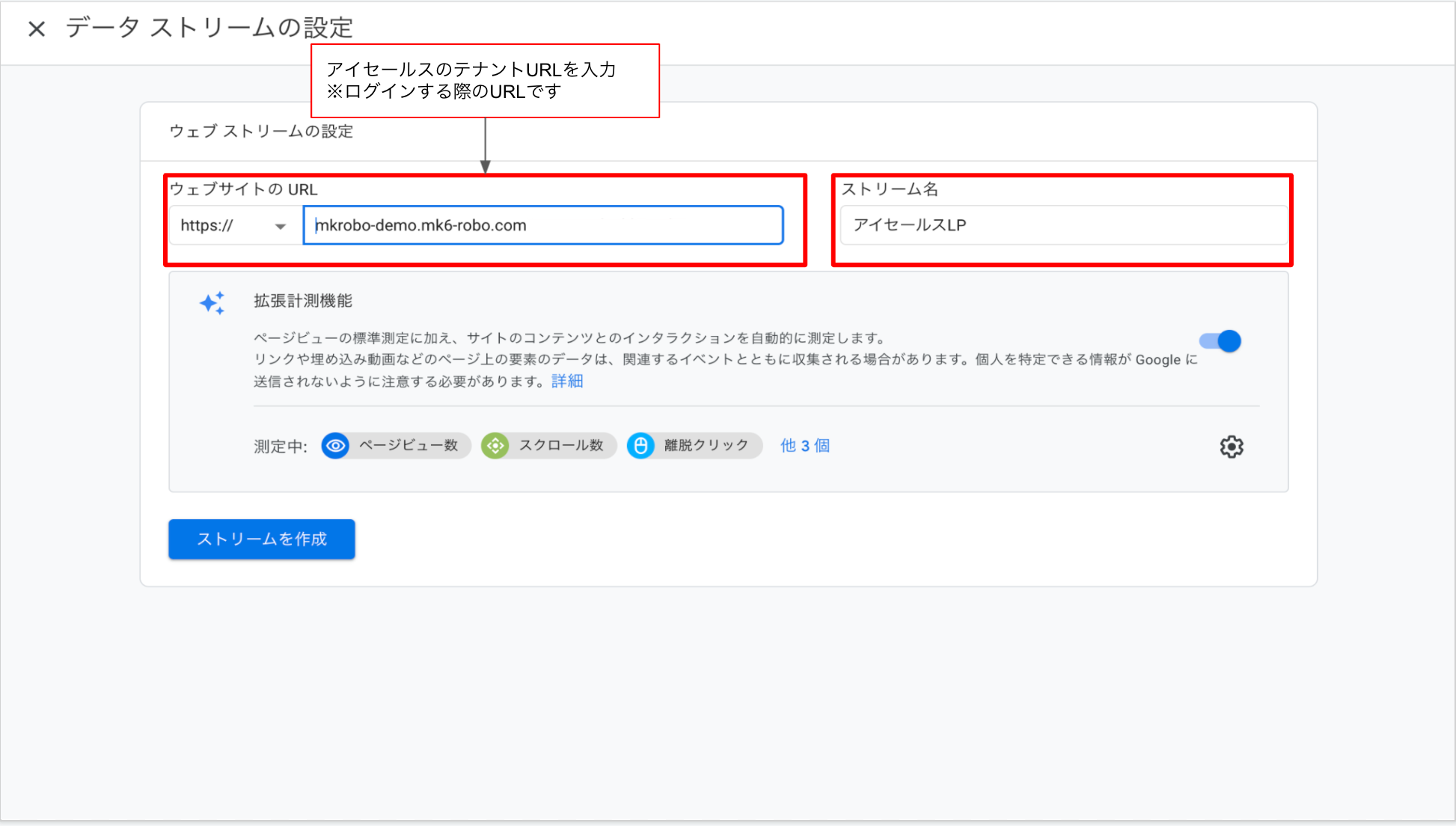 ストリーム名はわかりやすい名前を入力ください。