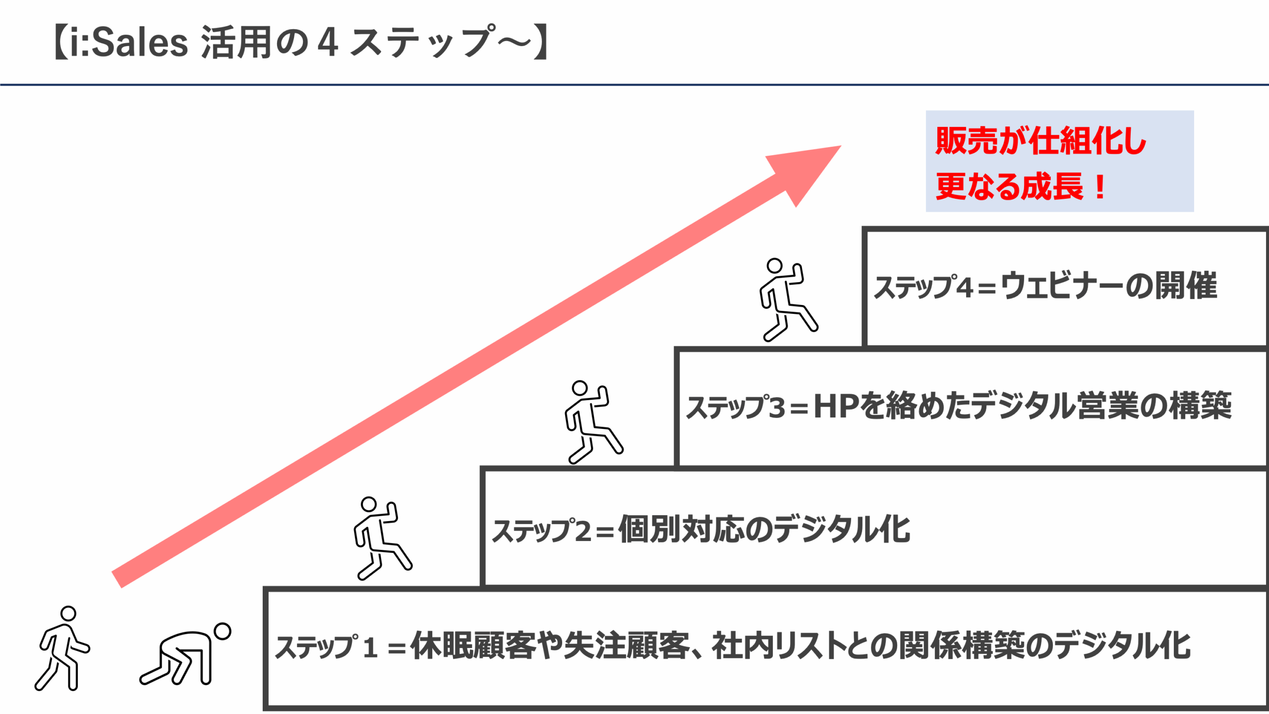 ピカパカ営業DXでは、営業のデジタル化を4ステップに分け、段階的に営業フローへ取り入れる方法をおすすめしています。